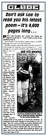 Lee was best known for his epic poem: The Cure for Insomnia which, in its film version, was listed as the longest film ever made in the 5th edition (published in 1994) of The Guinness Book of Movie Facts and Feats. He was also cited for the largest number of costume changes (201) by one performer.